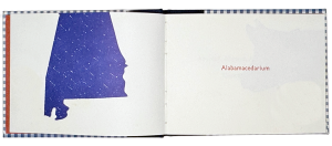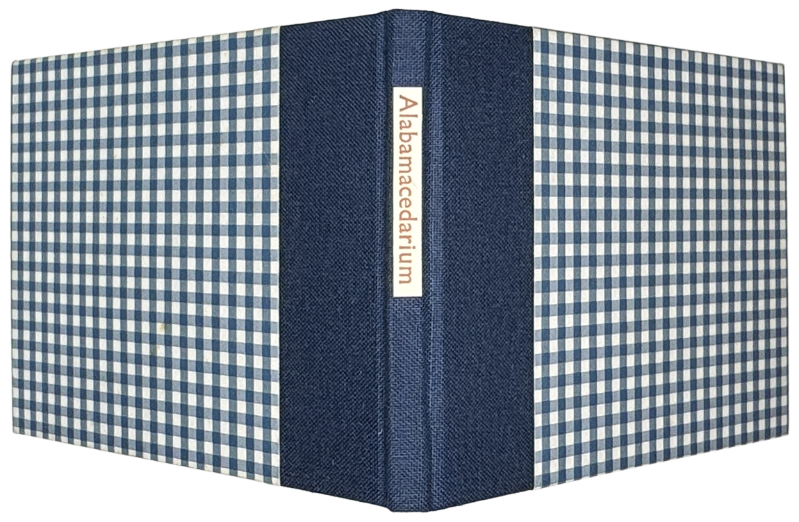 A poetical list of Alabama town names with Alabama-inspired images by Paul Moxon. Printed letterpress in blue and red on Mohawk cover. 24pp, 4.125″ × 3.25″. Quarter cloth in an edition of fifty.